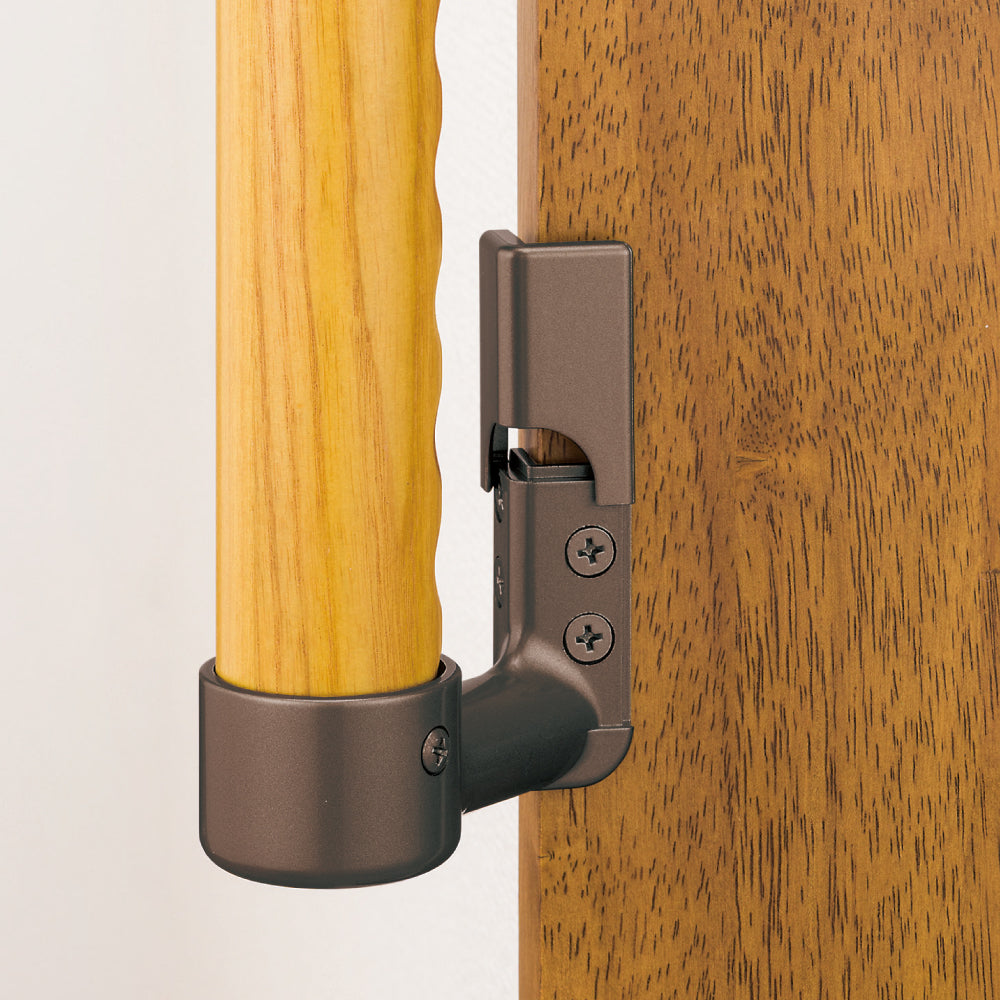 本製品は室内専用です。浴室や屋外での使用には適していません。また、土壁、ユニットバス、石貼りの壁面には取り付けできません。MDF材などの強度不足の素材も使用不可です。下地の強度と木割れには十分ご注意ください。ネジは定期的に緩みがないか確認し、手すりを取り付ける以外の用途には使用しないでください。
