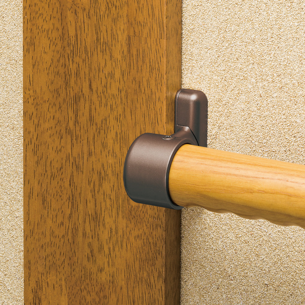 真壁用スリムエンドブラケットの最大の特長は、真壁など壁と柱面の段差がある場所でも手すりを連続させることができる点です。従来のブラケットでは設置が難しかった段差のある壁面にも対応し、途切れることのない連続した手すりを実現できます。和室と洋室が混在する住宅、リフォーム住宅など、段差のある壁面が多い場所に最適です。