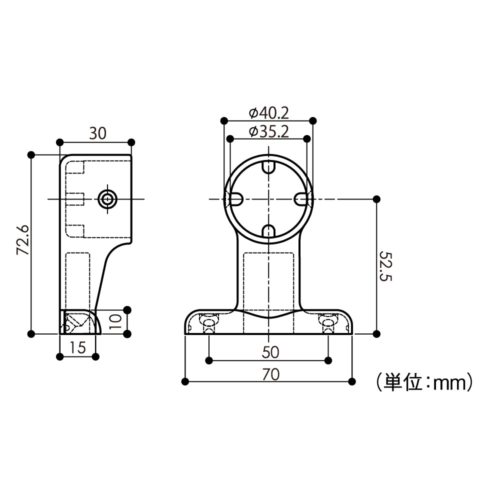 マツ六のECLEシステム手すり35シリーズ真壁用スリムエンドブラケットカバー付は、真壁など壁と柱面の段差がある場所でも手すりを連続させることができる専用ブラケットです。スリムな取付座とねじ頭が隠れるカバー付きで美しく仕上がり、同シリーズのECLE製品と組み合わせて自由な手すりシステムを構築できます。