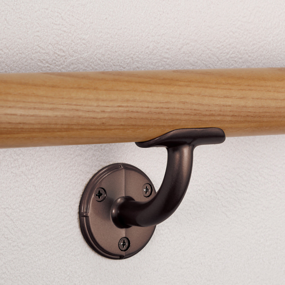 Eブラケット横型の最大の特長は、手すりを下から受ける構造です。階段や廊下で手を離すことなくつたうことができるため、高齢者の安全な移動をサポートします。途切れることのない連続した手すりは、日常生活の安全性を大幅に向上させます。